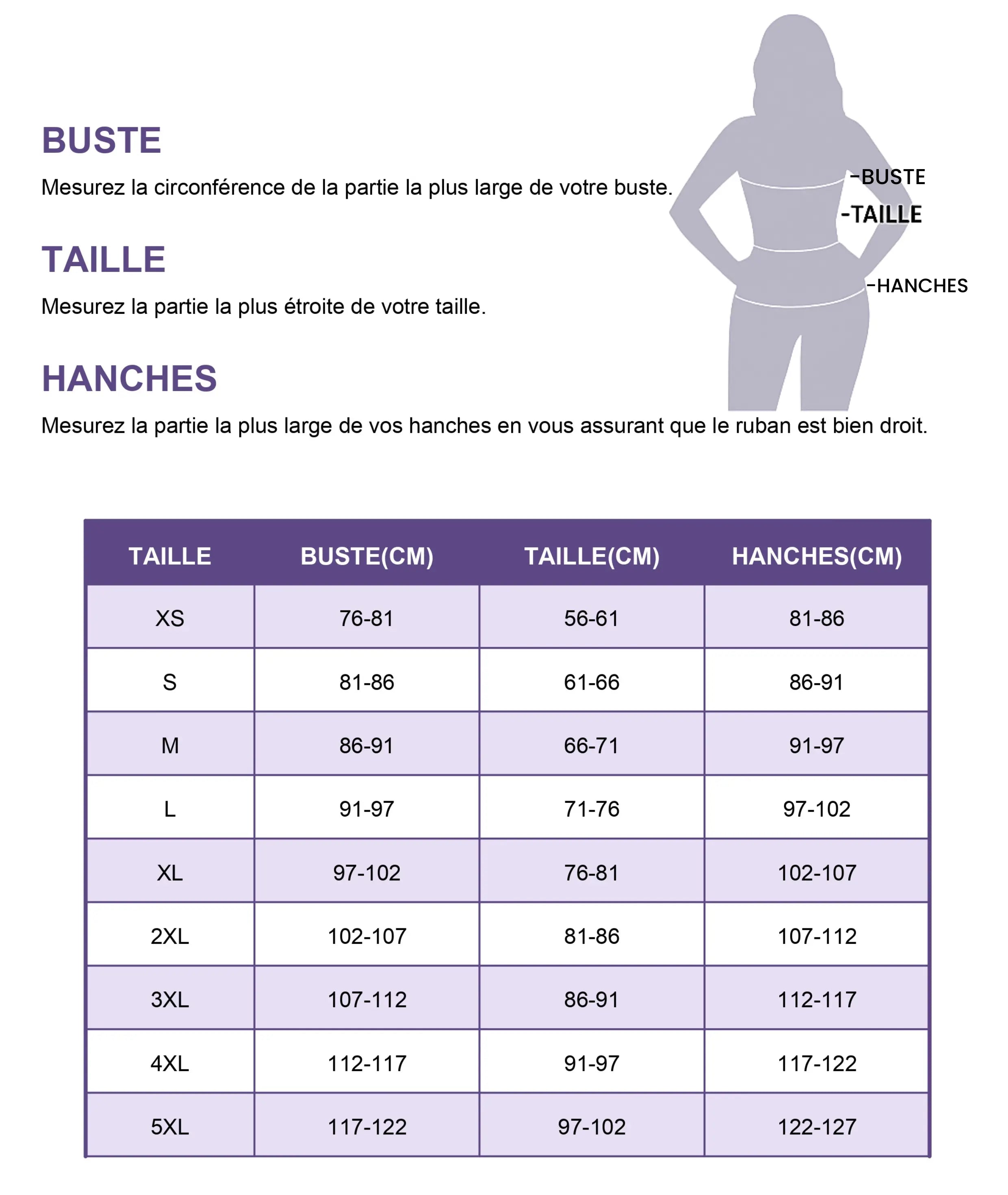 💡 Conseil : 96% de nos clientes commandent une taille en dessous de leur taille habituelle et sont ravies du résultat sculptant et de la compression parfaite.